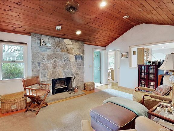 A POT OF GOLD AT THE BEGINNING OF RAINBOW A wonderful opportunity to bring your own design vision to this lovely 2/3 BR, 2BA home located in a circular neighborhood of 3 short streets off the beaten path but still close to everything - walking distance to shops and restaurants, less than 2 miles to two Metro North train stations, and a short drive to major highways, the new SONO mall, parks and Calf Pature beach. One-level Ranch with Eat-In Kitchen, Formal DR, LR with vaulted ceiling and a fireplace with a beautiful stone hearth (currently with a wood-burning stove insert, two Bedrooms, and a Full Bath. Hardwood Floors throughout. A few steps down is Primary Bedroom with En-Suite Full Bath and a closet (currently being used as a Den. A Bonus Room with windows overlooking the back yard is a perfect spot for a Home Office/Study/Art or Excersize Studio (currently used as storage. A Foyer between the Kitchen and the Heated 2-car Garage will make a great Mudroom. The biggest lot on the street offers opportunity for expansion, or turn the sunny flat yard into your outdoor oasis with plenty of space for a firepit, kids playset, and/or vegetable garden, while mature plantings add to the curb appeal. With a little TLC, 1 Rainbow Rd will become the house of your dreams.