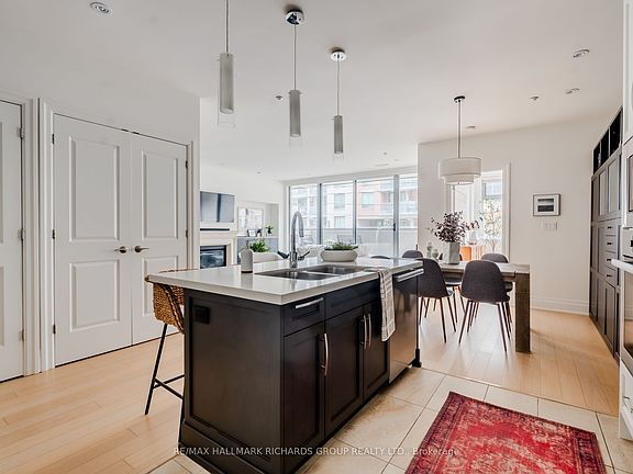 In the heart of The Beach and moments to the water, this rare 1402 square foot condo delivers scale, light and a natural sense of calm. Designed for comfort and elevated daily living, the layout offers two spacious bedrooms plus a secluded den with pocket door that creates the ideal work from home or quiet retreat. The open concept kitchen is equipped with stainless steel appliances, a gas range and a centre island that flows naturally into the living and dining areas. A gas fireplace anchors the room and adds warmth in both mood and function. Walk-out to a private south facing terrace that extends the living space and offers a great space for a morning coffee. The primary suite is a standout: Wall to wall windows. Custom walk in closet. Spa inspired four piece ensuite. The second bedroom provides generous proportions and flexibility for guests or growing needs. With underground parking, a locker and boutique building living, this is a rare opportunity to call one of the most coveted pockets of the Beach home.