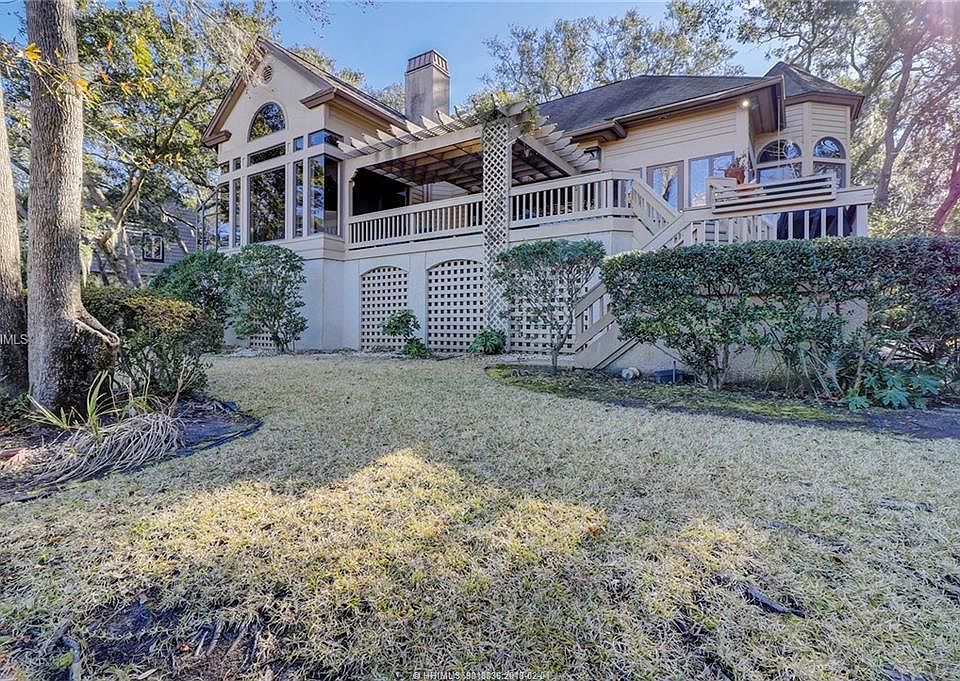 Great views of the tidal marsh & golf. Custom designed home that offers lots of natural light throughout. Located on a corner lot w/open space across the street. Wood flooring throughout most of the house. Kitchen has lots of wood cabinets, granite countertops & a built-in desk area. It opens to a cozy eating area & family room w/ a fireplace. Large master suite with a sitting area. Master bath has a double vanity, Jacuzzi, linen closet & a water closet. Attic w/ lots of storage. Large solarium that gives you the feeling of being outdoors. This is a beautiful unique home w/ fantastic views.