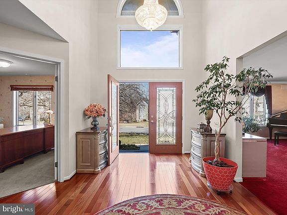 Set on a 0.35-acre corner lot in Velvet Hills South, this inviting home offers four bedrooms with two full and two half bathrooms spread across three finished levels of versatile living space. Step into a dramatic two-story foyer accented by rich hardwood floors and filled with natural light. Gather in the living room, where a cozy gas fireplace with a striking stone surround and built-ins creates a warm and welcoming atmosphere. The eat-in kitchen boasts granite countertops, an accent tile backsplash, a center island with a gas cooktop, stainless steel double wall ovens, two pantries, and a breakfast nook for casual meals. Host unforgettable dinners in the spacious dining room highlighted by elegant crown molding and a curved wall. French doors off the foyer open to a private office with a closet, perfect for working from home or as a main-level bedroom. Completing the main level are a half bathroom and a well-equipped laundry room with garage access, a folding area, storage, and a laundry chute. Upstairs, the primary suite is a relaxing retreat with two large walk-in closets and a luxurious newly-remodeled bathroom featuring a soaking tub, a frameless glass-enclosed walk-in shower with body sprayers, and vanities with LED-lighted mirrors. Three additional bedrooms and a second full bathroom with a dual vanity and shower tub complete the upper level. Endless possibilities await in the lower level, offering an expansive recreation room and a versatile bonus room ideal for a game room or home theater. The lower level also includes a half bathroom, a large walk-in storage closet, and a utility room for additional convenience. Walk-out stairs lead to the side yard for easy outdoor access. Step outside to a backyard oasis designed for both relaxation and entertaining. A spacious patio invites you to unwind under the open sky, while the deck with a pergola and lattice privacy screen adds charm and seclusion. Whether hosting summer gatherings, enjoying a quiet morning coffee, lounging in the hot tub, or dining under the stars, this outdoor retreat provides a perfect escape. Expansive side and front yards offer plenty of room for outdoor activities.