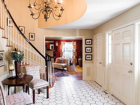 Just outside the historic village of Rhinebeck, 1 Reeder is a stately, classic colonial boasting 3,850 square feet, four-to-five bedrooms (the fifth, on the first floor, currently being used as an office), three and a half baths, formal living and dining rooms, a spacious family room, a sunroom, a screened side porch, and a grand entry with a gorgeous winding staircase, all nestled on two very private acres complete with a 20x40-foot in-ground pool, and pool house with full bath, kitchenette, rec space, changing room, and storage space. From mudroom, separate 2nd floor laundry room, central air, and bedroom ceiling fans to master suite, side balcony, French doors, and a butler's pantry, the details throughout this home show care, style, and functionality that can't be matched. Your friends and family will enjoy visiting this home as much as you'll enjoy living in it and making it your own.