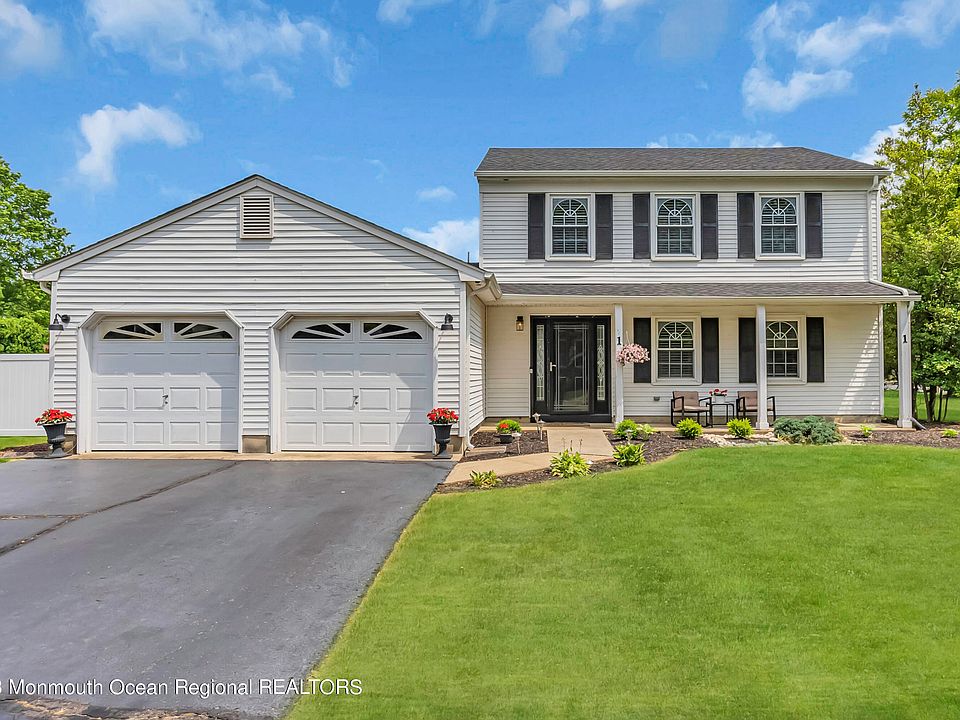 Best and Final Offers due by Midnight on Tuesday 6/20. Beautiful 3 BDRM 2 ½ BATH Colonial with 2 car garage and new roof in 2020 in the Desirable TWIN GATES COMMUNITY. Approximately ¾ of an acre Corner Lot Centrally located in Manalapan. Downstairs Features a Large Living Room & Dining Room with hardwood floors and beautiful wainscoting. Renovated ½ bath. Eat in Kitchen with granite countertops and walk-in pantry, open to beautiful Family Room with custom Built-Ins. Huge Fenced In Backyard Oasis with Heated Inground Pool with a BRAND NEW liner, New custom pool cover, and newer salt system. Upstairs features 3 spacious bedrooms all with custom closets, and 2 fully renovated bathrooms.