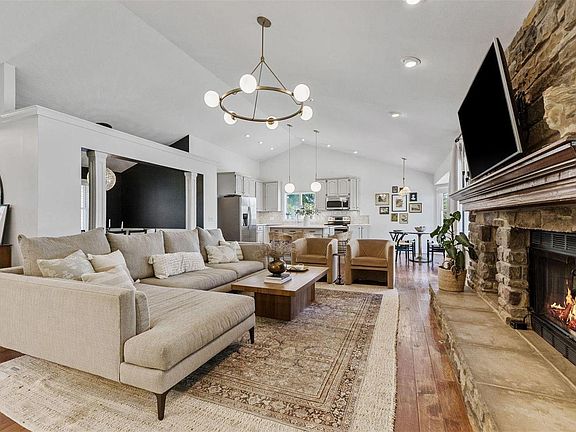 The vaulted, open concept living room & kitchen flow seamlessly together to create a warm and inviting environment for hosting. The living room is centered around a beautiful full masonry gas fireplace perfect for cozy nights at home. The updated eat-in kitchen features beautiful white quartz countertops, stainless steel appliances, large pantry and updated lighting. The large primary suite is an oasis with a large walk-in closet and en-suite bathroom complete with double vanities, a huge walk-in shower and separate jetted tub. Three other bedrooms and a full bathroom complete the main level. The recently redone lower level provides almost 2,000 square feet of additional living space with endless possibilities!