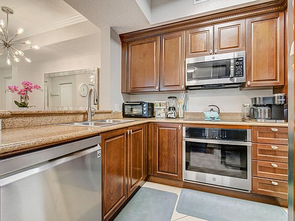Welcome Home to this 2/2 all-age-friendly community, its located in Renaissance Commons,San Raphael section is beautifully maintained with a parking garage, Bring your buyers now to this fantastic community of SAN RAPHAEL. This unit features a 2 BR/2B 'split floor plan.' The beautiful kitchen features wood cabinets, stainless steel appliances, granite countertops, new garbage disposal. Ceramic tile flooring in both bathrooms and newer vinyl wood flooring throughout. Full-size washer and dryer is adjacent to the kitchen area for easy access. The spacious main bedroom includes a walk-in closet and sliding glass door adjacent to the balcony. Community amenities include fitness room, pool, two parking spaces only steps from the unit on the same level for easy access,management is onsite.