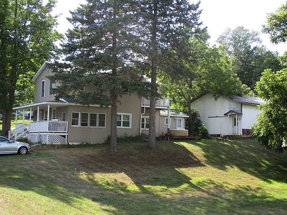 This quaint home is located on a corner lot with an unobstructed view of the Racquette River. The property borders an easement of the river owned by the hydro company. A great spot to fish or throw in a kayak! Built in the early 1900's, its classic charm pairs nicely with renovations that keep the style current and increase efficiency. The first floor features an open-concept plan with a large eat-in kitchen, mudroom/laundry room, formal dining room, living room, office and a full bath. A three season porch facing the river is accessible from the dining room. By the front door a staircase leads to the second floor that hosts two bedrooms, a full bathroom, and an open area at the top of stairs, which could be used as an office, sitting room, play room or a third bedroom. The largest bedroom features a walk in closet and a deck overlooking the river. There is hardwood flooring throughout the dining room and living room. Engineered flooring is in the kitchen and mudroom. The stairway and upstairs room are carpeted. Behind the house is a 1,500 square foot building. It is divided into 3 sections. It can be used for workshop, storage or what ever is needed. It has a separate 200 AMP. electrical entrance. This is a must see property!