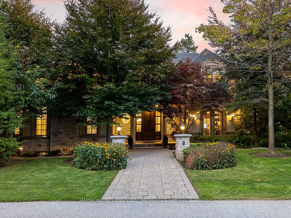 Allow your dreams to come true. Beautifully appointed and exquisitely maintained.The elegant formal rooms present numerous entertaining spaces for family and friends. Beautifully designed by renowned architect David Small, this home displays the highest caliber of detailing and finishes. The living areas comprise of a family room, library, gourmet kitchen for the gourmet connoisseur and dining room. The second level is the owners suite and three additional junior suites. The lower level offers an entertainment room, wine cellar, walk-out to rear garden and pool, wet bar and nanny's quarters. Walk-out to your private terrace overlooking the pool and mature private gardens ideal for alfresco dining and relaxation in your Shangri-la under the moon and stars. Serene landscaped gardens afford quiet seclusion amid a wonderland of mature trees. Located just a short stroll away, the private St.George golf club, boutique shops, bakeries, restaurants, some of the countries finest schools and The Toronto International Airport. A world of magnificence awaits!!