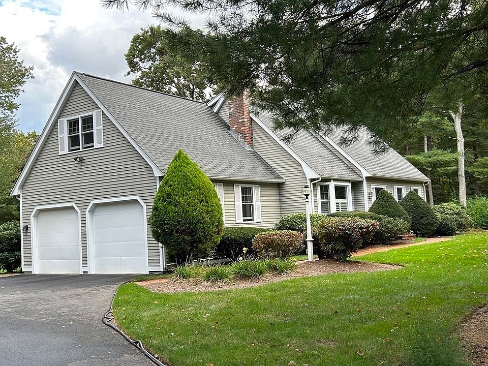 Move right into this meticulously maintained 9rm home situated on almost an acre lot in a cul-de-sac neighborhood. This stunning home features a newer custom kitchen with state of the art appliances, a breakfast bar, dining area, hdwds and a 3 sided gas fireplace which leads into the sundrenched fam rm with gorgeous wood floors, french doors and custom window seat with storage. The 1st flr office boasts a wood burning fireplace and custom trim work. The sizeable primary bdrm has his and her custom closets. There are 2 other generous sized bdrms with custom closets. The finished bsmt offers a media room and a playroom. The 2 car garage has a bonus area above it ready for future expansion. The 2 tier deck overlooks the pool and lush landscape grounds with newer firepit and custom-built shed. A new 4 bdrm septic system was installed in 2019, new ac unit and a 5 yr old roof. Great commuter location with easy access to all major routes and shopping. A short walk to town and schools.