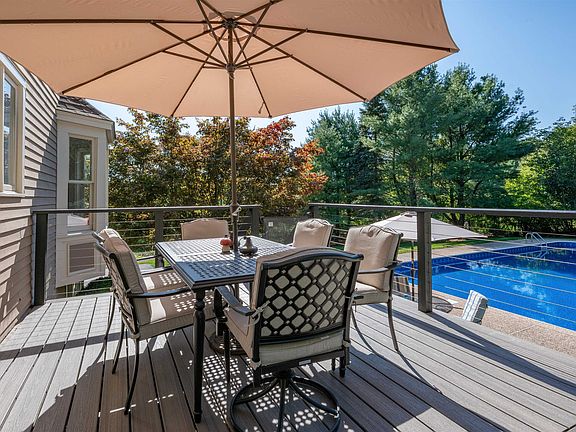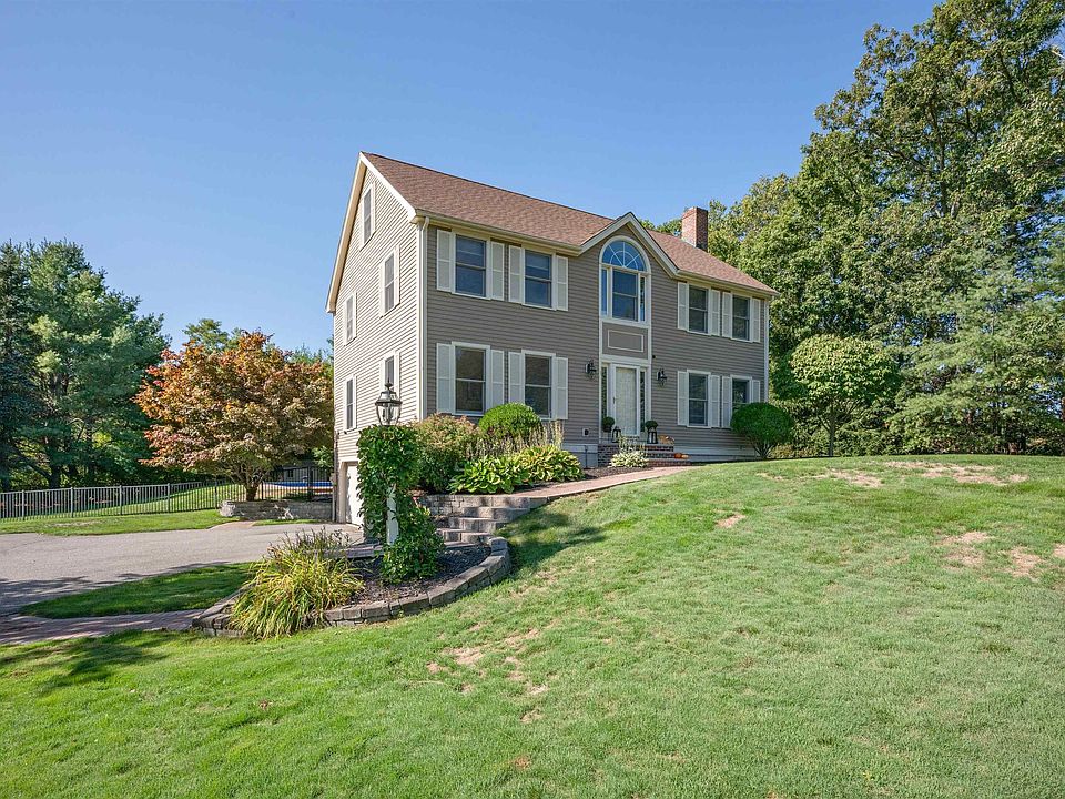 Nestled in one of Plaistow’s most sought-after cul-de-sac neighborhoods, this move in ready and beautifully maintained Colonial offers an abundance of privacy and convenience. Enjoy the serene landscape perfect for entertaining with the newly installed maintenance free deck and large custom inground pool. The pool was recently updated with a new pump, filter, solar cover, winter safety cover, and liner which includes a 10 year warranty. The first-floor features hardwood floors, updated fixtures, and custom molding throughout every room. The sunny entryway welcomes you and leads to the spacious living room which opens to the dining room boasting a gorgeous picture window overlooking the private backyard. The eat-in kitchen is fully updated with Quartz counter tops, tile backsplash, recessed lighting, and sliding glass door. The Family room features recessed lighting, cozy gas fireplace and updated half bath with laundry hookups. Travel up to the second floor to find the large primary suite with cathedral ceiling, walk-in closet, and upgraded bath with marble shower and flooring. The spacious hallway leads to the remaining bedrooms with hardwood floors, crown molding, walk up attic access, and an updated full bath with crown molding and marble floors. Additional features include Central AC, irrigation, heated garage, finished basement. Great commuter location! Close to the highway and local shopping. Welcome to Greenfield Hill Estates! Showings begin at Open House 9/26 5-7pm