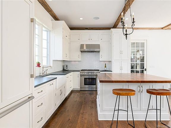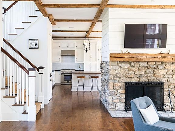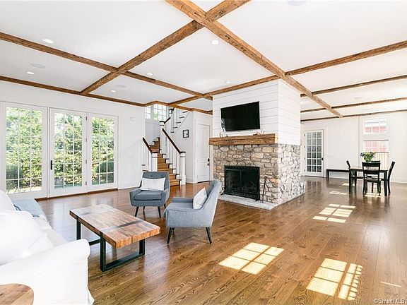 Chic meets historic in this Silvermine masterpiece designed by Andy Glazer and sited within the Village of Silvermine and the acclaimed Graybarn Inn and Tavern. A gently winding stone drive leads to 1 River Rd where life feels softer and kinder; offering a respite from the hectic outside world. Soaring 9 1/2 foot ceilings punctuated with reclaimed hand hewn beams, chef's kitchen and stunning master suite. A separate 192 sq ft outbuilding can be an office or studio allowing privacy as you work from home. Finished basement with 750 bottle wine cellar and 2 car heated garage. Stroll along the Silvermine river, pick up a latte at the mercantile exchange or try fishing or art classes at the Silvermine Art Guild. A slice of heaven only 45 minutes out of Manhattan.