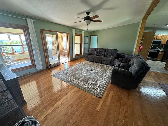 This updated ranch style home features an open floor plan. The main level offers updated kitchen with center island open to dining and living room. The French doors in the living room open to a three season room with spectacular views. The master bedroom with walk in closet has a private updated bath. Two more bedrooms on the main level along with full bath offer plenty of space. Laundry is located on the main level. The lower level has a large rec room with walkout to fenced yard area. An additional bedroom and full bath make a great guest room area or in-law. Other features include hardwood floors, propane heat, and central air, new deck and newer appliances. A total of 4 garage spaces, 2 on the main level, 2 in the rear of the house. Also included is a 1.5 year old Generac 22kw whole house generator with 10 year warranty.