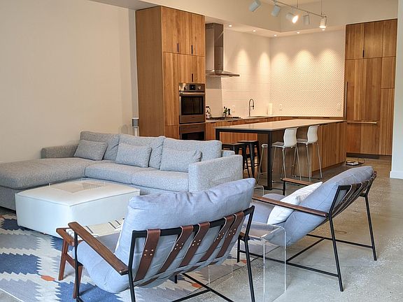 This brand new loft condo is located in the "Modern Mill" complex in Williamstown, MA. It is a 2 bedroom, 2 bath, 1 study (with twin trundle beds) fully equipped with modern amenities & a private patio along the Green River. The 1st floor unit is walking distance to Williams College (0.5 mi) , downtown Williamstown (0.3 mi), Clark Art Institute (1.2 mi), Taconic Golf Course (0.2 mi), Williamstown Theatre Festival (0.7 mi) . It is a short drive to MassMOCA, Jiminy Peak, Tanglewood & other destinations in western MA/southern VT. Part of the historic 9-acre Cable Mills community, the Modern Mill & adjacent River Houses were built to respond to their natural surroundings: river, meadow, woods. 13+ foot ceilings, oversized windows, and private outdoor spaces are all designed to erode the boundary between exterior and interior. The newly completed complex focuses on sustainability by using renewable materials and green building practices. Modern finishes complement the interior with flat-panel frameless cabinetry, stone countertops, open living space. The patio of this unit overlooks a waterfall on the Green River. Washer/dryer, central A/C, gas fireplace, high speed wireless internet, 77 " Smart TV with Google Chromecast for app streaming (Netflix, Hulu), well-outfitted chef's kitchen with gas stove for those inclined to cook. Access to a shared "Outdoor Living Room" with fire pit, grills, and seating along the Riverwalk. Available for academic-year lease September 2021-May 2022. No pets. Smoking & parties prohibited in unit and on building grounds. Must be over the age of 25 years old. Rent includes utilities (heat, gas, electric, Internet). Daily/weekly rentals possible in August '21 & from June-August '22. Covered parking and additional outside space assigned to unit. Available for rental via Zillow, Airbnb and Craigslist.