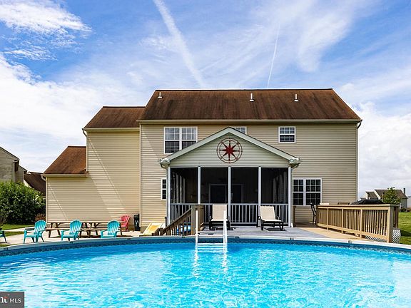 This beautiful 4 bedroom, 2.5 bath colonial home is located in the desirable community of Huntington Mills on a cul-de-sac and situated on one of the largest lots in the neighborhood (.49 acres). It is directly next to open space. The welcoming front porch is the perfect place to enjoy the views while the rear private yard is a stunning oasis featuring a large screened-in porch, gorgeous patio, sun deck and a large swimming pool. The first level of the home includes a foyer, office, formal dining room, eat-in kitchen with stainless steel appliances and a center island which opens to a spacious family room. The upper level features a large primary bedroom with en suite and a walk-in closet, 3 additional bedrooms, laundry and a full hall bath. A full basement with new bilco doors, 2 car garage, neutral decor, gorgeous 1st floor wood flooring and in the coveted Smyrna School District, this home is move-in ready and is the one that you have been waiting for.