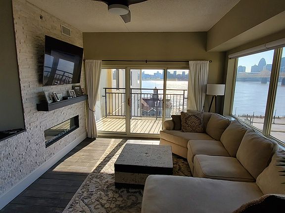 Updated riverfront condo with dramatic city views. Convenient to many restaurants in charming Jeffersonville. THE place for Thunder! New kitchen with top of the line appliances, and granite throughout.