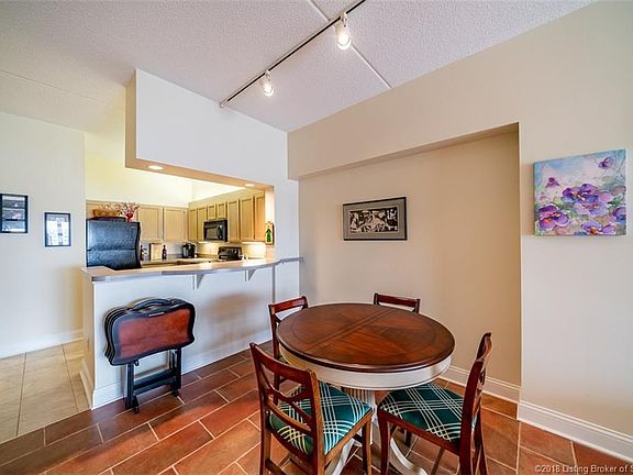 Ready to move into 7th floor 1 bedroom/1 bath overlooking the Ohio River and the Louisville Skyline. Premier location for Thunder Over Louisville with the everyday convenience of walking to multiple restaurants & entertainment options. The kitchen features lots of storage, tile floor and black appliances. The dining & living room feature tile floors & ceiling fan in the living room. The master bathroom has an updated walk-in shower with glass doors and tiled floors. The large master bedroom is situated to provide views of the skyline while lounging in bed & has high-end berber carpet. Full laundry room provides extra storage. Deeded parking space 450. Harbours is a premier property with gated entries, fitness center, indoor & outdoor pools, grills on-site, patio/gazebo areas. We've got the View! Monthly HOA covers amenities, cable, high speed internet, HBO, Showtime, water, sewer, trash & master insurance. HVAC under a bi-annual cleaning/ service & water heater replaced in July 2016.