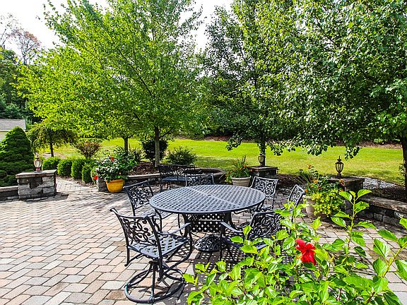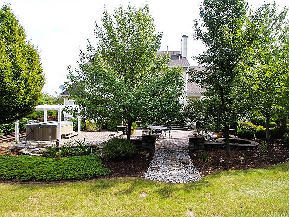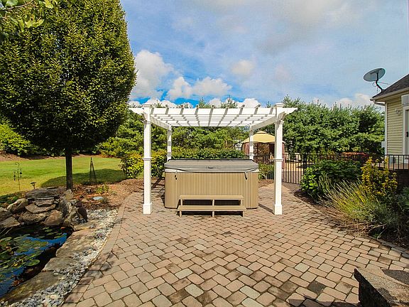 IMPECCABLE AND IMPRESSIVE COLONIAL home in Riversedge Estates offers sophisticated living wth backyard sanctuary! Lovingly maintained and updated with finished basement, custom kitchen with granite, Jenn Air appliances, wine refrigerator and ice maker, remodeled first floor bath featuring custom shower, master bedroom suite with sitting room and gas fireplace, conservatory, family room with floor to ceiling stone fireplace. The private, tree-lined backyard features brick paver patio with lighting, fire pit, koi pond, hot tub with pergola and heated, in ground pool. Additional detached garage, new roof and skylights, new carpeting...an AWESOME ESTATE you will want to call home!