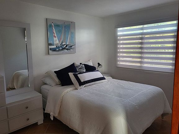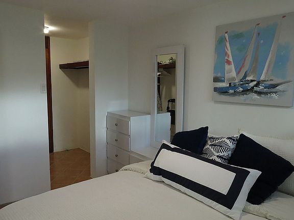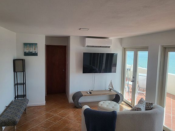 Piece of paradise on the curves of Rincon. Located on the Anasco Bay beach front with beautiful views of the Caribbean Sea. Two bedrooms and one bathroom apartment equipped with one queen and two twin beds. Apartment has accommodations with private indoor parking. Fully equipped kitchen with dining area, washer and dryer. 150 gallon Water tank back-up. Spacious terrace that will allow guest to relax, BBQ and sit down to appreciate a breathtaking ocean view The nearest golf club is a 30-minute drive away. Fifteen minute' drive to Rincon Lighthouse, Domes Beach for surfing and Mayaguez airport. Forty minutes from Aguadilla airport. Walking distance to four of the most visited restaurants in the Rincon area. Access to shore fishing right in front of building Located on a third floor. Elevator or handicap facilities not available.