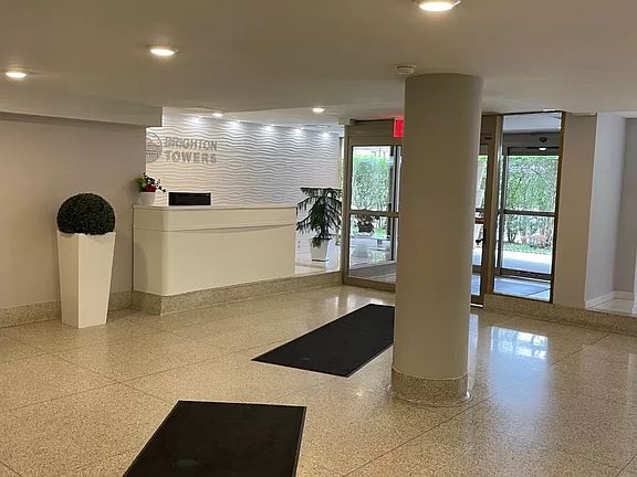 Prime waterfront location, Steps from the Boardwalk and Beaches. Sunny oversized (650 sq.ft.) studio apartment in very good condition in at Brighton Beach's premier co-op, Brighton Towers. Unit windows overlooking Ocean view, very quiet. Parquet floors throughout the apartment. Entering the apartment through a delightful entryway with closets. A light and versatile open layout can accommodate your choice of a dining room, living room, and bedroom. The spacious separate kitchen features a large window with a partial ocean view. Brighton Towers have swimming pool, gym, sauna, conference room, upgraded center laundry facility, two elevators, storage, doorman, management office, and on-site super. Maintenance fee includes all utilities. Sublet OK from first day. Indoor garage (waitlist for parking). Shopping, restaurants and transportation (B and Q subways, buses) right there.