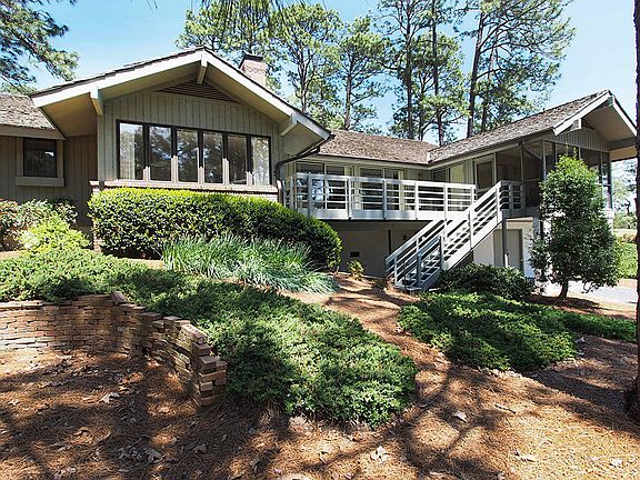 The BEST Golf Views in all of Pinehurst, located on an island of Golf completely surrounded by six holes of the original Pinehurst Country Club Course No 1, a Donald Ross Course. Located in desirable Doral Woods and built on a double lot at the end of a private cut-de-sec, everything about this home makes it a special place. Enjoy morning coffee or evening cocktails on the spacious deck or screened porch with expansive views and zen-like settings. Great for private moments or entertaining friends! Open rooms with hardwood floors, walls of windows, natural light, clean lines, high ceilings and views everywhere. Easy Golf cart ride to the Main Clubhouse. Current owners did multiple remodels and brought 1986 condition up to date. New Cedar Shake Roof in 2008 with 50 Year Warranty.