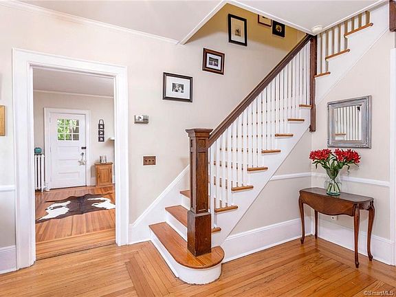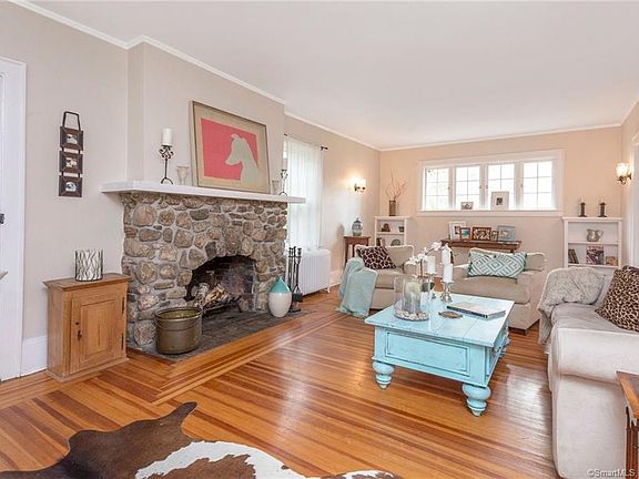 Located at nearly the end of a private road, this wonderful home features a large living room with wood-burning fireplace and access to stone terrace, formal dining room, and light-filled eat-in kitchen/FR. The spacious master suite has a charming fireplace and private bath. 3 bedrooms and bath complete the second floor. High ceilings, wood floors, abundance of windows and private fenced yard are only a few amenities. Short distance to central Greenwich shops, restaurants, and train.