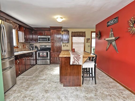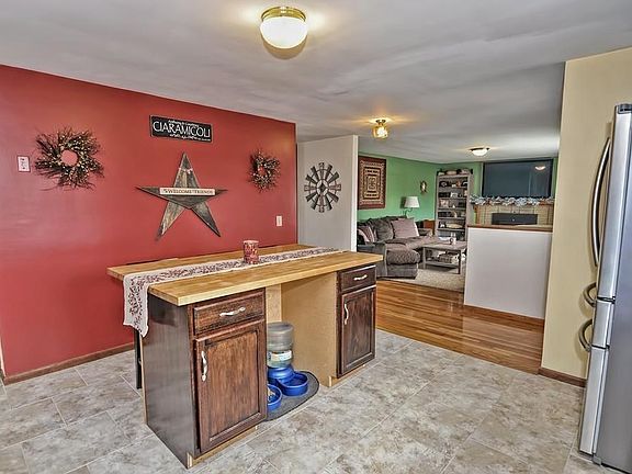 This nicely updated 3 Bedroom Ranch is located on a quiet side street and has lots to offer. The kitchen boasts a center island and tile flooring as well as stainless steel appliances and plenty of cabinets. There is a spacious Living Room with a pellet stove insert and a picture window overlooking the front yard. The dining room offers an updated laminate floor and a newer french door that leads to the deck and backyard. All 3 bedrooms offer refinished hardwood flooring. The updated bathroom has a newer tile floor. The lower level is finished with a large family room that walks out to the side yard and driveway area. The basement includes a spacious laundry area as well as great storage. The home is fully insulated. The exterior offers ample parking,a storage shed and a newer deck. You are sure to love the fenced back yard with raised bed gardens. This charming home won't last long.