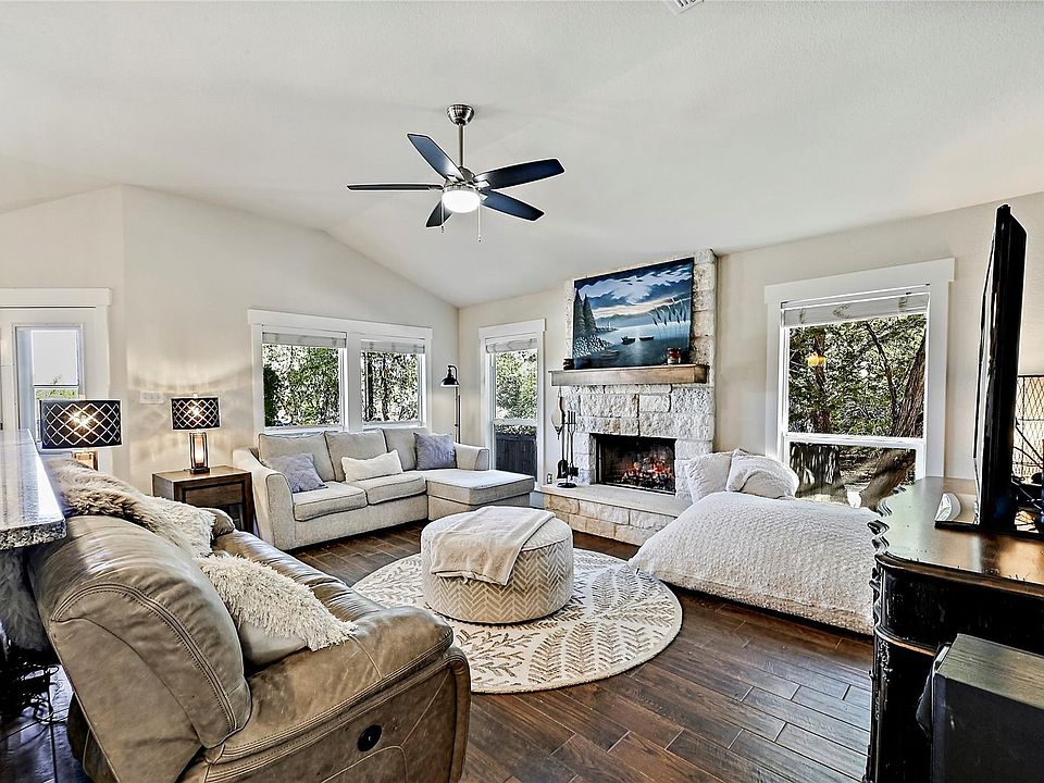 Comfortable Hill Country Living Close to Downtown Located on a quiet street in the Wood Creek North neighborhood, this well-maintained stone home offers relaxed Hill Country living just five minutes from downtown Wimberley. Built in 2017 and designed for easy one-story living, this three-bedroom, two-bath home features a practical layout with inviting spaces for both everyday life and entertaining. The living area is anchored by a wood-burning fireplace, creating a warm focal point, while the kitchen offers granite countertops and a functional flow into the main living spaces. A flexible mother-in-law setup provides added versatility—ideal for guests, extended family, or a dedicated work-from-home space. The backyard is set up for enjoyment year-round, featuring a heated pool and hot tub along with a covered back porch—perfect for relaxing evenings, casual get-togethers, or unwinding after a day in town. Wood Creek North offers neighborhood amenities including a playground, dog park, and disc golf, giving residents easy access to outdoor recreation and community spaces. Conveniently located near shopping, dining, and the charm of downtown Wimberley, this home delivers comfort, function, and location—all in a thoughtfully designed Hill Country setting.