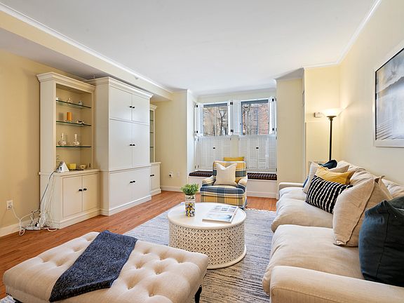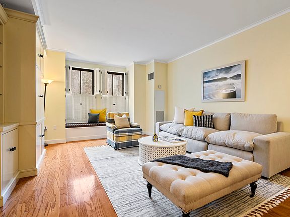 Enjoy this sensational and spacious 2 bedroom, 2.5 bath choice floor plan duplex home in convenient and prime South End location. Just a few steps from the building's entrance to the front door of this gracious home, which opens to a bright and expansive livingroom. Hi ceilings and hardwood floors add to the appeal as does the nestled window seat overlooking picturesque Rollins Square. The chef’s kitchen features stainless steel appliances, gleaming cabinetry, and pass-through to well proportioned dining area, prefect for entertaining. Direct access to sunny private patio surrounded by lush and mature plantings. Oversized half bath tucked discreetly off to the side. Upstairs primary bedroom easily accommodates a king-size bed, and offers two closets, including a large walk-in. Ensuite marble tiled bath with tub and double vanity. 2nd bedroom and a full 2nd bath complete this level. This offering includes 1 full garage parking space, with a 2nd full space available, $100,000 additional.