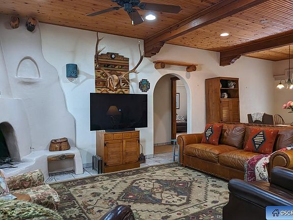 Charming Southwestern home within walking distance of hiking trails at Gomez Peak and the Gila National Forest. Split floor plan includes 3 bedrooms and 2 1/2 baths. Bedrooms have laminate wood floors and the rest of the house is tiled. Open country kitchen with a breakfast bar and breakfast nook with access to the peaceful covered back patio which is secluded and boasts wildlife of deer, birds, and rabbits etc...Updated appliances, metal roof, refrigerated a/c, water softener and a central vacuum system. The woodwork throughout the home is just amazing. The house sits on 1.48 acres that is very private with ample room for gardening, low landscaping maintenance, fenced-in dog run with a shed, charming enclosed front courtyard and the garage has a workshop area with a heater and over head storage. Minutes from town but rural living. Make an appointment today to see for yourself!