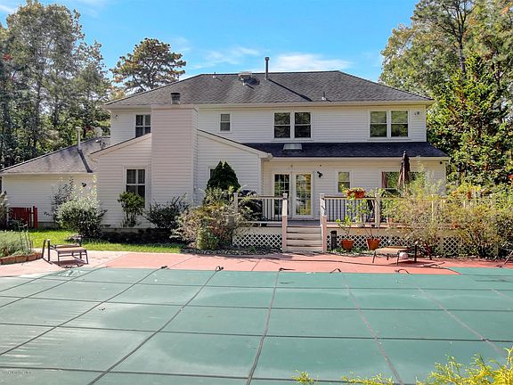 Gorgeous center hall colonial! Be in for the holidays!! 5 Bedrooms, 3 baths, in - law suite on 1st floor. Backing to woods - gorgeous inground pool on a very private setting! Custom touches include marble flooring with decorative inlay, hardwood flooring in the living room & dining room, custom lighting, moulding, and paint. Light & bright hallway w/ french doors gives free flow access straight through to the backyard as you step inside the front. Skylight & vaulted ceilings, recessed lighting & plantation shutters on the windows. Newer kitchen with granite counters & upgraded appliances. Your backyard oasis including inground pool backs up to woods and is very private. Take a look today and start packing tomorrow!