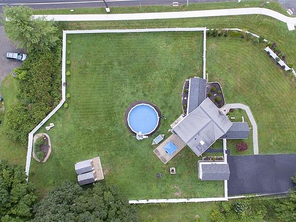 In-town living Walk to the park, the library, restaurants, shopping, movies and have a front row seat for the Labor Day Parade and Holiday Tree Lighting New sidewalks lead straight to Fairfield Hills to access the Community Center and hiking trails, and to the town Dog Park. This property has beautiful new landscaping. Both front and back yards have pretty plantings and new fencing. The backyard is completely level with a patio, pool and private, tranquil, landscaped sitting area. Bright and clean home with large beautifully updated Kitchen open to Living Room with charming stone fireplace. Den lined with floor to ceiling windows was once the Maryland Tea Room in the 1930s and has its own entrance to accommodate a home office or could be a fourth bedroom. Newly decorated first floor bedroom with Bath and new laminate flooring offers floor plan flexibility. Two huge bedrooms, with newer carpet, and full bath on the second floor. Full Baths have updates. Detached Garage and two sheds for outdoor storage. Many newer upgrades including hot water heater (4 yrs, roof (9 yrs and driveway sealed (3 yrs. Basement has waterproofing system. Full house security system with remote access feature. This house has been loved and pampered It's a perfect location to enjoy all that Newtown has to offer