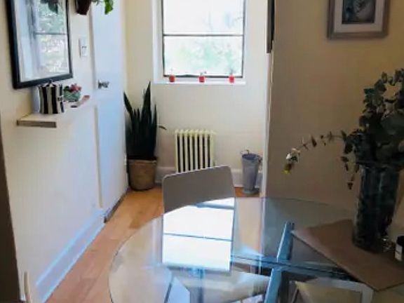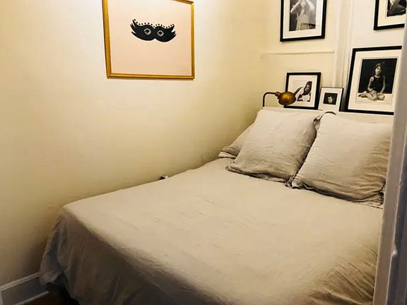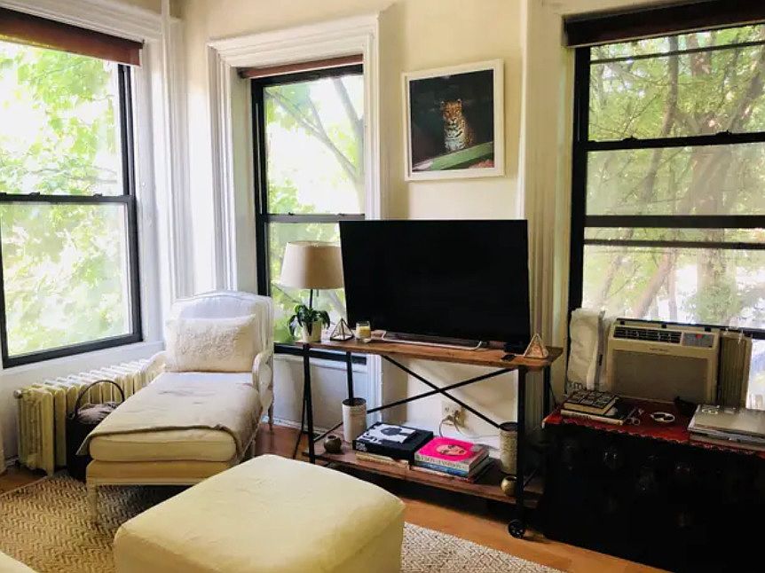 Fort Greene * Exclusive This one-bedroom Brownstone corner apartment not only offers a great location but walking distance to all trains, LIRR, four bus lines and twenty minutes to Manhattan. Close to a plethora of restaurants and cafes, Bam, Atlantic Terminal Barclays Center nightlife and more. The living space with three-corner windows allows good natural light and direct park views. A separate kitchen has space for dining, closets for storage and a window. One bedroom, a full bathroom with a soaking tub and shower. Hardwood floors throughout complete this apartment. No pets. Rent stabilized building. $2,369.50 a month.