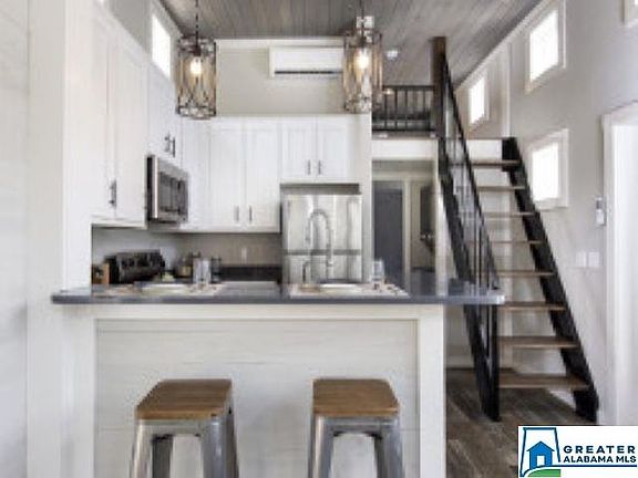 Your tiny slice of heaven without ever having to leave your hometown! You will love this tiny home equipped with everything you need to live comfortably. This tiny home features a bedroom, bathroom, kitchen equipped with a breakfast bar, refridgerator, built in microwave and dishwasher. You will enjoy the living room with an electric fireplace and a loft that be an additional bedroom, dining or play area. Outside you will enjoy a beautiful waterfront view and the tranquil serenity of the lake atmosphere.