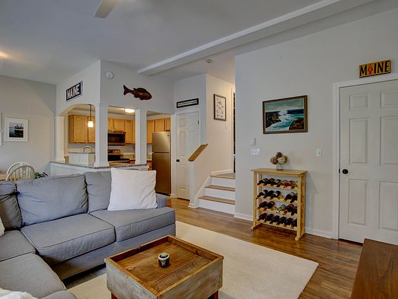 Experience comfort and convenience in this beautifully updated 2-bedroom, 1.5-bath townhouse in the sought-after coastal town of Brunswick! The open-concept main living space features wood laminate flooring, a three-step descent into the living room for added character, and access to a private brick patio. The kitchen boasts stainless steel appliances, granite countertops, and a pantry for extra storage.