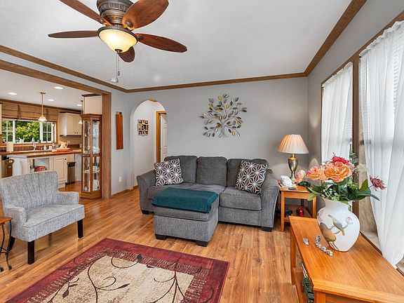 Stunning manufactured home that redefines elegance and quality! This custom-designed residence features sturdy 2x6 walls with extra insulation and beautiful sheetrock finishes, proving that style and durability go hand in hand. Step inside to find a spacious layout with a generous living room and chef’s dream kitchen. The kitchen boasts a central island, abundant counter space, and real wood cabinets—perfect for your culinary adventures. French doors from the dining area open to a large deck, providing breathtaking views of the private backyard and the rolling hills beyond. Retreat to the luxurious Master Suite, with custom-designed walk-in shower and charming rolling barn door. The three bedrooms features large walk-in closets, with ample storage. Highlights include a whole-house generator hookup, ceiling fans throughout, and motion detectors. Convenient heat-tape system is easily controlled from inside the home. Property is situated on the largest and most private lot in the Country Meadows community, providing an ideal setting for entertaining or enjoying quiet solitude. Need more space? Massive 26x26 garage with two automatic doors offers room for vehicles and more, with direct access to a well-appointed laundry room. The functional layout seamlessly connects to an additional bedroom/den/office and a full bath. this home is designed for both entertaining and relaxation. Open houses Fri/Sat/Sun 10/4-10/6