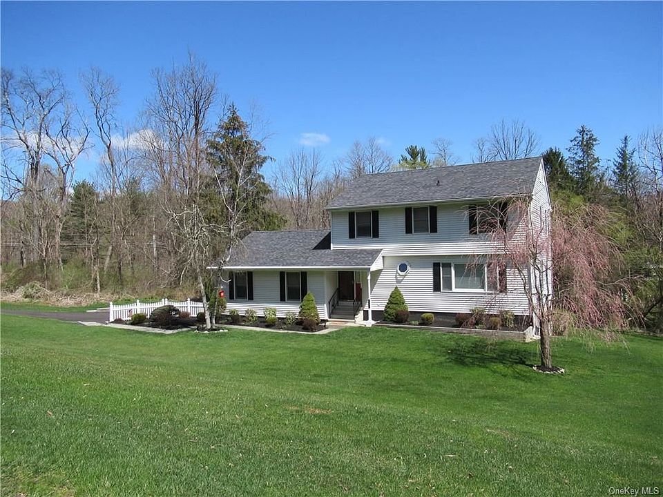 Looking for the perfect legal Mother-Daughter? Or a rentable auxiliary apartment? This lovingly cared for, well maintained Center Hall Colonial won't disappoint the discriminating buyer. Walk through the inviting Foyer to an oversized & airy sunk in Family Room with vaulted ceilings, built in bookshelves and the ability to host large gatherings easily. In addition, the generous sized Living Room with hardwood floors is a blank slate for your decorating or entertaining plans. Match that with a Formal Dining Room and Eat in Kitchen boasting oak cabinets with under cabinet lighting, tiled backsplash, granite countertops, stainless steel appliances, working island with seating, pendant lighting and separate desk/work area providing lots of storage and a versatile use of space. Kitchen leads to large deck and private backyard for additional entertaining areas. Convenient 1st floor laundry. Other upgrades include new driveway, new highly durable garage floor, newly renovated powder room, newer roof, ductless air conditioning, Kohler fixtures, custom window treatments, some hardwood floors, crown molding, great closet space too. Second floor, calming Master Suite with en suite renovated bathroom and 2 more bedrooms, 2nd full bathroom and den make this part of the house live like a 4 bedroom. And there's more! The finished basement has a fully functioning kitchen, living area, full bathroom and den/office/sleeping space plus sliding glass doors out to a private deck. All this with access to the quaint Village of Pawling, Metro North commuter train, shopping, restaurants, the Appalachian Trail, the Empire State Trail, Lakeside Park and numerous cultural events. Move in ready - all on 1.7 acres of bliss.