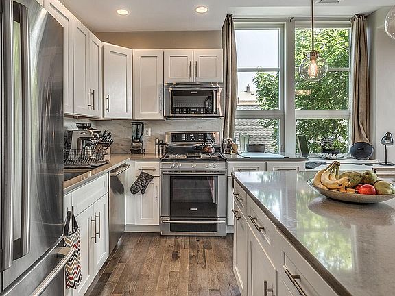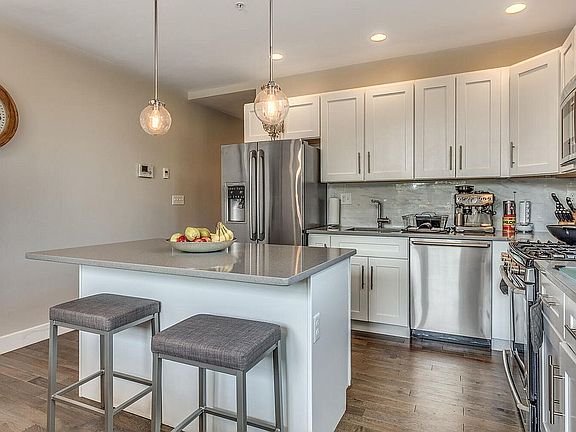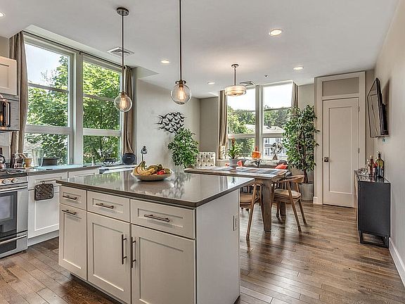 Highly desirable end unit floor plan at the Residences at One St Clare - a 2015 conversion of a school house to luxury condos. Spanning 1583 sq ft over three levels with two king sized bedrooms, this unit has it all including - steam shower, sauna, fire placed living room, walk out roof decks, walk in closets, chef's kitchen, grass cloth accent wall paper, motorized black out shades. Located at the end/corner of the building, this unit has additional window, storage closet and private roof decks - one with a skyline view of Boston, the other with sunsets over the Fells Woods. Adjacent to I93 and on the commuter bus line to Haymarket, this location is a commuters dream. Very well run association with health reserves, no special assessments planned and low condo fee. The building is very secure with Video security and phone access intercom and FOB access. Don't delay, this is a truly unique offering - a time tested brick building with three levels of living area in a top location!