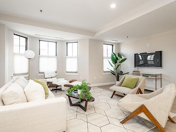 Rarely available condominium unit at The Columbia on St. George Street, across from Franklin Square Park! New construction in 2000, this spacious two bedroom residence is newly renovated and features beautiful wide plank hardwood floors, an open floorplan living and dining space with a bay window and private deck and a chef's kitchen with marble vein quartz counters and backsplash, shaker style cabinets and Jenn-Air professional appliances. The bathroom is a stunner with marble basketweave flooring and fixtures by Kohler and Grohe. The master bedroom is huge and has a double closet with custom closet systems. An ample second bedroom, separate laundry room with new full sized side by side washer/dryer and central air round out this beautiful home.