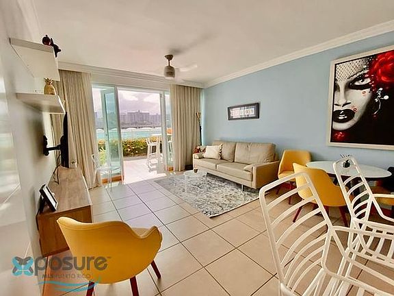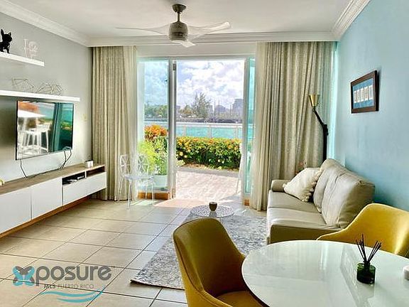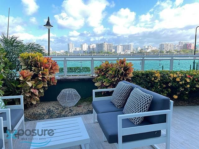 Direct water views of the Atlantic Ocean and Condado Lagoon. This ground floor unit includes a partially covered terrace with additional square footage to enjoy outdoor space with a fantastic view. It feels like living in a boat! Located between the Caribe Hilton and Paseo Caribe, just at the boardwalk that connects all with easy access to restaurants and commercial spaces. Condado Lagoon amenities include swimming pool, gym, 24 hour lobby attendant, valet parking and full power generator. Includes one parking located at the garage of Paseo Caribe..