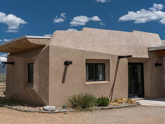Live inside a work of art in this Artist's Dream Dwelling in Taos. Welcome to ATOMICA- a home unlike any other- where art, nature and architecture meet in perfect, unconventional harmony. Designed and built by internationally acclaimed visionary artist Allan Packer, this inspiring Taos retreat is anything but ordinary. The property consists of a house, a guesthouse, and a studio on 3 acres. Organic, offbeat and unconventional in the best possible way. Sculpted thick pumice walls and large windows incorporate and frame the stunning views into a magical, serene space imagined to inspire. The layout defies expectation- fluid and intuitive, built to honor light, shadow and the surrounding land. The main house consists of 2 suites radiating off a large great room made up of an impressive kitchen space and a cozy sunken living room anchored by a whimsical fireplace. Step right out onto the stunning back patio with a firepit, hot tub and jaw dropping views in every direction. The guesthouse is fully equipped with a kitchen and has an established history of rental income. Set atop a peaceful rise, tucked near the edge of the Rio Grande del Norte National Monument, you're just minutes from breathtaking hikes where bighorn sheep roam, epic mountain biking trails, and the quiet power of the river below. The home also overlooks the 16th hole of the Taos Country Club and golf course, blending wild nature with wide-open fairways. This is not just a home-it's a living, breathing work of art. It's a space for dreamers, makers and seekers. Whether you're an artist, writer, hardcore recreationalist or someone simply craving authenticity and soul in a sea of sameness, this home offers something rare: a chance to live in art, not just hang it on the wall. One-of-a-kind. Off the beaten path. Totally Taos. Serious inquiries only. Magic lives here.