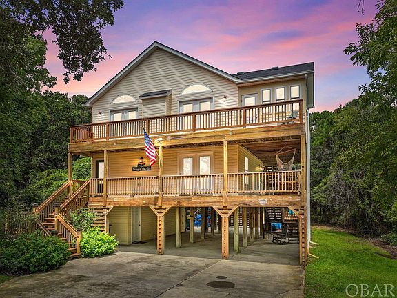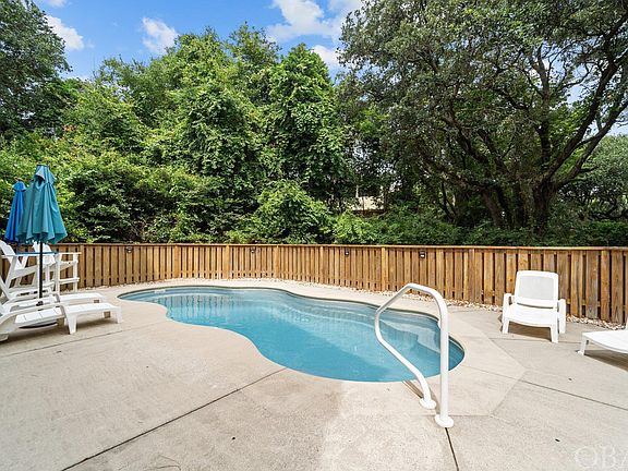Huge Price Reduction!! Immaculate 4 bedroom 3 bath with SALT WATER POOL. Quick walk to the beach by way of deeded access. Popular reverse floor plan. Plenty of decks! Open living area with cathedral ceiling. A bright, open updated tile floor kitchen. High-end stainless-steel appliances and plenty of beautiful upper end white cabinets. Soft close drawers. The fridge has an “Instaview Door in Door” that allows you to see in with two knocks on the door. High-End “Geos recycled glass surface-C glass” counter-tops with back-splash. Convenient eat-at island. Wine cooler. Everything conveys except the few items on the Exclusion List. Dining area. The living room area has a beautiful gas fireplace. Step right out to a 14 X 10 sunroom with ceiling fan and a portable AC/heater vented to the outside. There are two French style doors that access the large upstairs front deck. The master bedroom is located on the top floor with the living area for maximum convenience. Attractive leaf pattern ceiling fan. Gorgeous tile floor master bathroom with soaking tub as well as a stand-up shower and convenient high counter tops. On the top floor there is another large bedroom which makes use of the tiled bathroom in the hall. The middle floor has two bedrooms each with attractive leaf pattern ceiling fans. Plenty of closets. The north-east bedroom has a convenient door out to the large east deck. The south-east bedroom has a double pane door out to the front deck with access to the huge east deck. They share a large tile floor bathroom with a tub/shower. Sold fully FURNISHED with exclusions. On the ground floor there is a super convenient dry entry with extra storage. There is a huge amount of under house parking and towards the back of the home there is a large open underhouse area that is two floors high. You could do so much with this area, open it to the pool area, enclose it. So much potential. (The owners looked into adding two more bedrooms off the back of the upstairs part of that area and even acquired permits to do the addition but decided not to pursue it. That is why you see a County Permit for 6 bedrooms.) Sought after X Zone. Behind that is a super attractive pool that is surrounded by vegetation all around. Very private! Pride of ownership really stands out with this home. Incredibly landscaped with solar accent lights. Solar lights illuminate the front stairs and some of the decks. This home is not in a rental program. At the end of the cul-de-sac is a small Southern Shores Civic Association area. But there is also a deeded access to Ocean Blvd for quick access to the beach. Cut through to Ocean Blvd and you have the option to go north or south to a SSCA Beach Access. Agent and owner do not guarantee floor plans or measurements completed by Lighthouse Visuals. Appliances are all 4 years old or less except the dryer. Roof is 9 years old and in good condition, vent pipes replace 2 years ago. Main heat pump is 9 years old and downstairs heat pump is 8 years old. North Beach Services maintains the heat pumps. Pool service opens and winterizes pool, cost for both is $500 annually. Landscaping service maintains property and mows the lawn with an annual cost of $2,900. Pool and landscaping services are provided by Ostlund’s Services. Look in associated docs for County Permits and Surveys, Expenses, Bill of Sale, Exclusion List, 44A Covenants, MOG/RPD, House Sketch, Southern Shores Realty Disclosure etc. For a low $70 per year the Southern Shores Civic Association lets you take advantage of three sound side marinas with picnic and crabbing areas, Private Sound Beach, thirty-four Private Ocean Beach accesses, parks, basketball and soccer fields. For an additional $25 fee join the Racket Club, or for an additional $30 fee join the Boat Club. Vacant, combo lockbox. EZ to show!