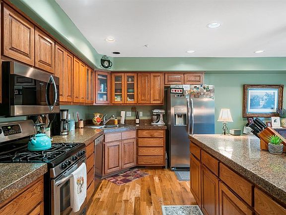 Light and bright end-unit townhome in a great location. Extra south and east facing windows bring tons of natural light into this spacious three bedroom, three bathroom townhome. The beautiful open concept kitchen, living and dining area has custom cabinetry, granite counter tops, convenient pantry and all stainless steel appliances. The main living area features a corner gas fireplace for cozy winter nights. Gorgeous solid white oak hardwood flooring was recently installed throughout the home and the whole interior was recently repainted. The new back deck and flagstone patio is stubbed out for natural gas for your BBQ and the south and west sides of the home were recently re-painted. The small fenced in yard is perfect for pets and has 2 apple trees and an apricot tree. Upstairs is the large primary suite with vaulted ceiling, large walk-in closet and private deck. The primary bath features a double vanity, walk-in shower, jetted tub and separate seating area with built-in make-up table. Also upstairs are two more large bedrooms with big closets, a full bathroom and a super convenient laundry room. The large two car garage and extremely low HOA fees make this spacious townhome the perfect fit for anyone looking for an open floorplan with great space and nice finishes.