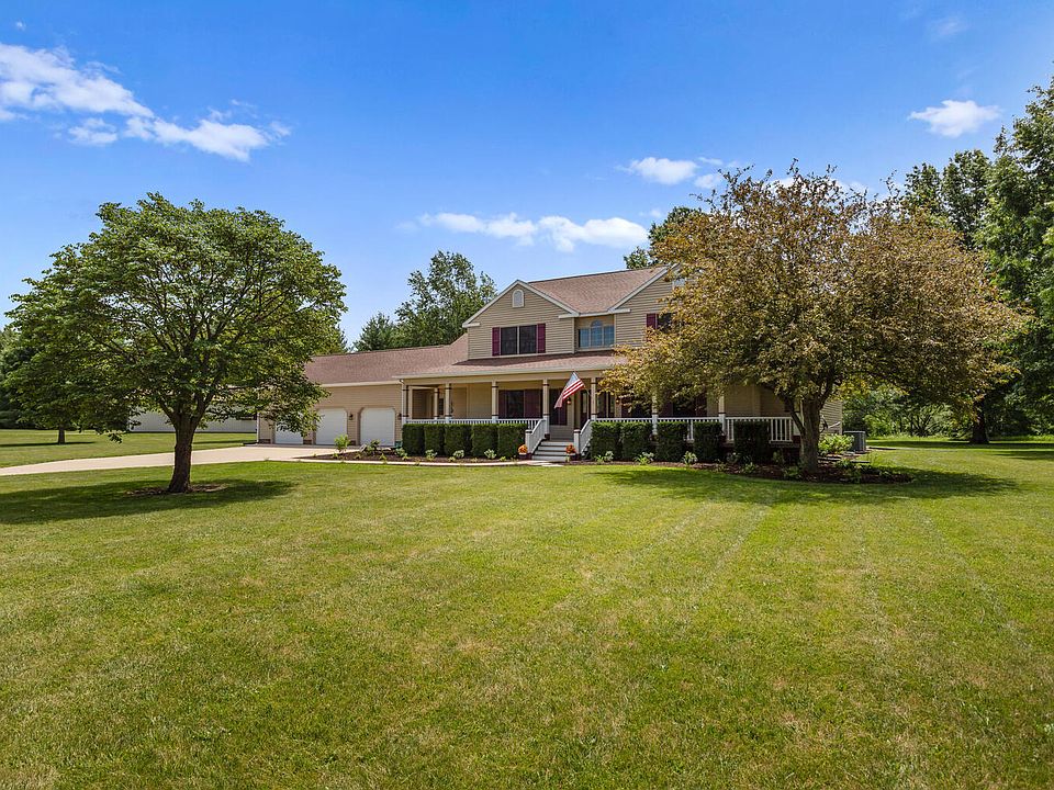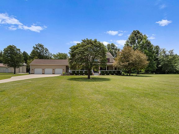 If you need space and easy living, this stunner is for you! Situated on 5 acres, this home boasts eye-catching curb appeal with a well-maintained exterior & interior. Step inside to discover a conveniently laid out main level featuring vaulted ceilings, large windows all equipped with custom made 80% ultraviolet shade screens, flooding the space with natural light, and an open living room with a grand fireplace. The fully remodeled kitchen is a chef's dream, equipped with a dual fuel, commercial-grade stove, updated counters, and ample cabinet space. The main level also houses the luxurious master en suite, complete with a remodeled master bath featuring a zero-entry shower, rain shower, heated towel rack, and a custom walk-in closet. For added convenience, the laundry room is located on the main level as well. Head upstairs to find three generously sized bedrooms, another full bath, and a storage room. The basement offers ample space for entertaining in the large recreation room, which features a second fireplace. Storage will never be an issue with an oversized 3-car attached garage, a 36x58 shed with 9 ft doors, a 36x24 shed with 13.5 ft doors, and abundant storage space throughout the home. Enjoy your morning coffee in the back porch or on the newly built deck. Located in the Monticello school district, this hidden gem offers picture-perfect living.