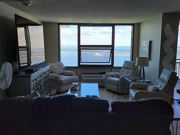 Epic views of NYC, Sandy Hook, and the Atlantic Ocean abound in this recently remodeled Penthouse unit at Eastpointe. Amenities in building include a heated pool, weight room, cardio room, sauna, BBQ area, outdoor fire pit, rooftop clubroom, covered parking, and a 24 hour staffed front desk. Live on vacation in the Penthouse! Shown by appointment only.
