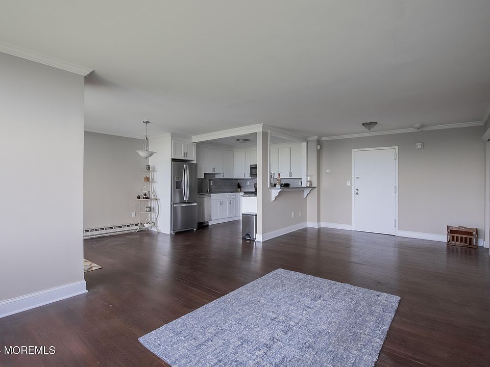 Call The Iconic Eastpointe home! Fabulous opportunity to live in an updated, sunny and bright 2 bed/ 2 bath end unit on the water side.Enjoy water views & bay breezes and seasonal panoramic skyline view on your private balcony or take a dip in outdoor heated Olympic sized pool.Recently updated kitchen, bathrooms and flooring, this spacious home boasts a new kitchen w/ full stainless appliance pkg, wood flooring,granite counters, breakfast bar.Washer & Dryer in Unit.Eastpointe is a full service luxury lifestyle building offering owners outdoor grilling area, sauna, gym /weight room, tennis courts dog run, social room ,pickle ball, concierge and 24 hour monitored desk. Convenient to Ferry,trains, buses,Beaches,marinas and restaurants. One dog/one cat allowed.