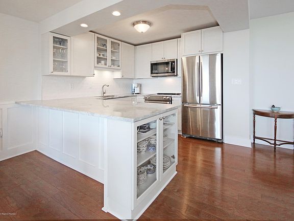 You wanted a WATER VIEW and no work to do, right? Here is the absolute perfect opportunity. Building under renovations! Commanding view of the NY skyline, Sandy Hook and Bay, Owner was staying & spent $130,000 on this unit in the past 1 1/2 years. Top of the line kitchen and baths, new windows, doors, ceilings, built ins, continuous wood (red oak) flooring throughout. Beautiful trim and moldings, Foyer was reconfigured to add a pantry along side the guest closet. Views from all main rooms, Interior halls, Clubhouse & Gym all in the midst of renovations. This building is going to be the next waterfront hot spot. Seastreak ferry, beaches, walking trails, restaurants all nearby. Come lower your BP and relax with one of the best views from the highest point on the East Coast