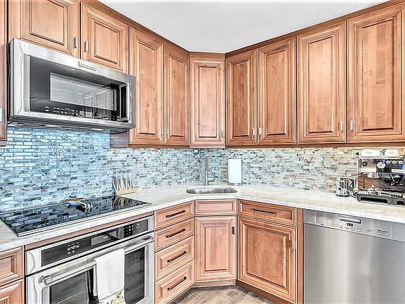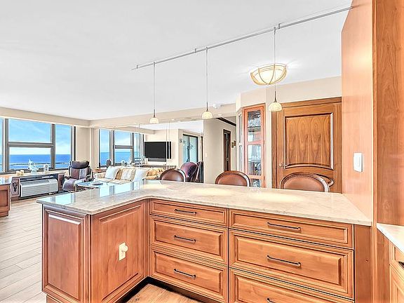 Back on Market. Extensive upgrades, detailed workmanship, and imported embellishments really stand out as well as Million Dollar Views. Everything has been redone to create a totally enhanced unit with a ''like new'' feel & maximized use of space not seen in other units. NYC & unobstructed Ocean views to entertain seasonally or all year round. Open Kitchen boasts Jenn Air, Thermador, and Miele appliance upgrades w/ built in wine fridge. New steam shower in mbr, granite tops, IN- wall heaters, & Toro Bidet toilets. Built in closets. New Hurricane sliders & wood grained porcelain floors.. Eastpointe amenities incl. Olympic size heated pool, 2 gyms, 24 hr security, Sky Top room w/panoramic views, Tennis, Play & BBQ area, Games room with pool and card tables. Min to Sea Streak, Beaches local restaurants, & marina. Perfect for NYC commuter