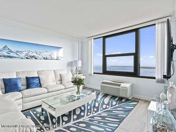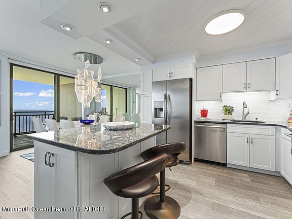 Eastpointe Oceanside Custom designed two bedroom-two bath unit with phenomenal views of the NYC Skyline, Sandy Hook & Atlantic Ocean. Radiant heat with individual room controls is beneath imported tile throughout the entire living space for unsurpassed comfort. Modern kitchen with granite tops and open design for entertaining, designer light fixtures, custom crown molding, cedar closet inserts, and your own in unit laundry room for added convenience. Baths are designer installations featuring heated Jacuzzi and Hansgrohe fixtures. The open floor plan kitchen design offers fabulous entertaining possibilities. Complex features covered parking, gym, storage, pool, tennis, 24-hour security, and a rooftop club room with some of the best views imaginable along the Eastern Seaboard.