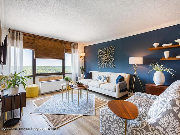 Move right into this stunning 9th floor 1 BR, 1 BA unit at the desirable EastPointe Condo high rise. Perfectly located with easy access to major highways, beautiful beaches, minutes from Henry Hudson Trail, easy commute to NYC via Sea Streak Ferry Service. A true commuters dream. This condo has crown molding, updated kitchen, new flooring in Living, dining and bedroom. Open living space leads to brand new Anderson slider door onto private balcony with a peaceful view Monmouth County Hillside. EastPointe offers excellent amenities with 24 hour security, 2 gyms with weights and cardio equipment, library, main sitting area and a gorgeous club room with panoramic views of Sandy Hook beaches & NYC skyline. Beautiful grounds with heated pool, BBQ grill, fire pit and tennis court.
