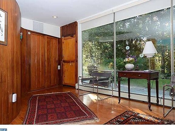 On the National Register of Historic Places, Rose Valley's 'Miliken House' is recognized as an important post World War II home with an early solar design and interior work by Wharton Esherick. Front door, woodwork divider wall, kitchen pantry, stairs to second level and other features in the house were crafted by this renowned local 20th century artist known for his unique works in wood. Designed to bring the outdoors in with southside floor to ceiling windows in the living room, family room, and bedroom. The home is situated on lovely landscaped grounds and is tucked away on a private lane. New central air and hot water heater, newer roof, hardwood floors, and stone fireplace. Walking distance to the Hedgerow Theatre, Saul preserve, School in Rose Valley, Rose Valley Swim Club, and Rose Valley/Moylan train station. Easy commute to Philadelphia.
