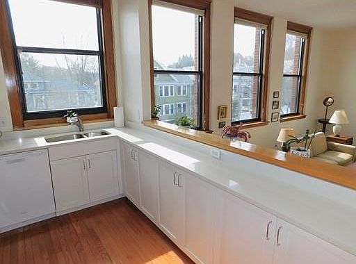 A rare opportunity to purchase in the prestigious Cutter School Condominium Complex. This sunsplashed 2 bdrm 2 ba 1300 sq. ft. home offers the charm and character of yesteryear, renovated with today's amenities. The updated fully applianced kitchen boasts ample cabinet space and prep area that overlooks the spacious living room with an abundance of natural light, Cathedral ceilings, oversized windows, hardwood floors and new central air and heat pumps are just some of the many highlights this home offers. There is a dedicated dining room and two good sized bedrooms with custom built ins and a walk in closet. This lovely home is steps to public transportation, shops and restaurants, Cutter Park and the Minuteman Bike Path. The property offers in unit laundry and is pet friendly Do not miss this one of a kind home.