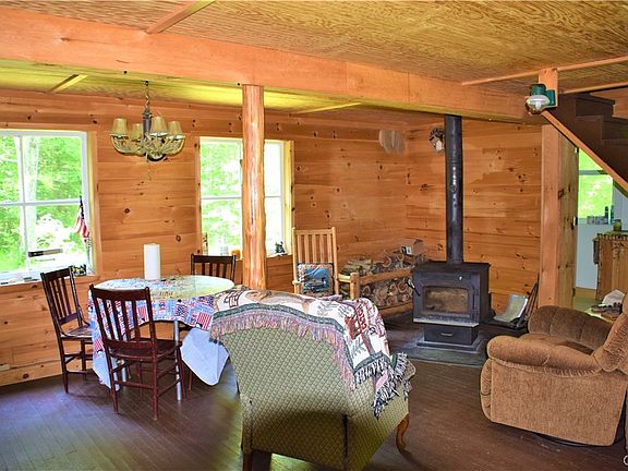 Remote Hunting Camp on 104 acres sleeps 6. Adjacent to State Land. Every Hunter’s dream. Past the state forest, this property is the last one you can reach by driving. Turn a generator on and you have lights or use the propane lights. Great system with full hot water shower, kitchen, bath, almost a regular home! Heat from a propane furnace and the wood stove. Use it till the snow gets too deep on the road, then winterize with the turn of a valve. Beautiful set up. If you want great hunting (deer, bear, wild turkey) or just to commune with nature, this wooded hundred acres with deer stands and food plots is absolutely perfect. Directly on the snowmobile trail and 4 wheeler trails. Let’s go for a ride and check this one out!